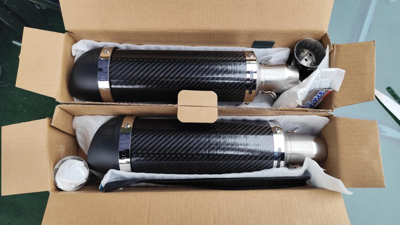– Silenciadores de alta calidad de fibra de carbono.